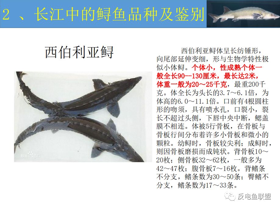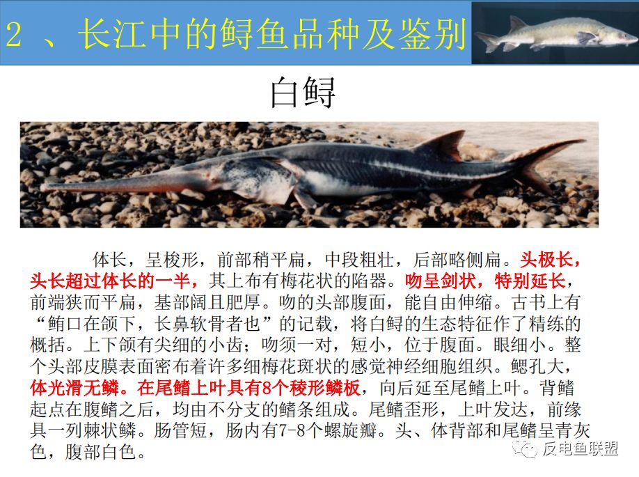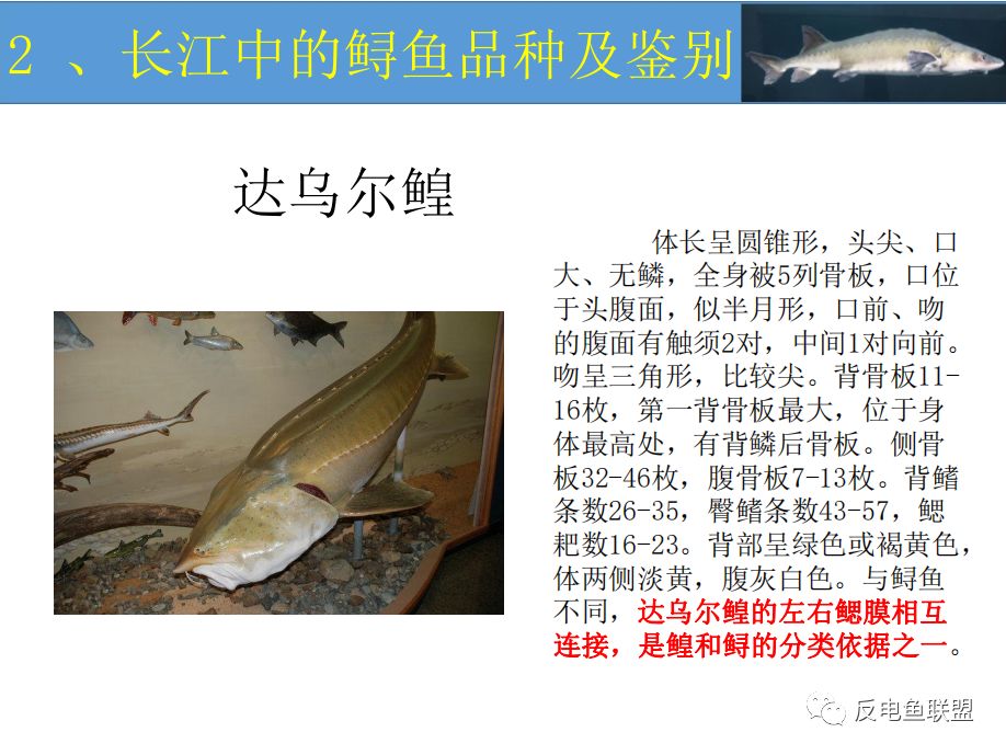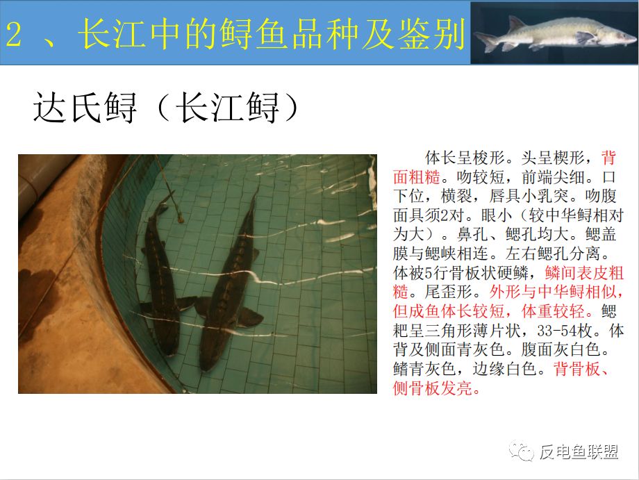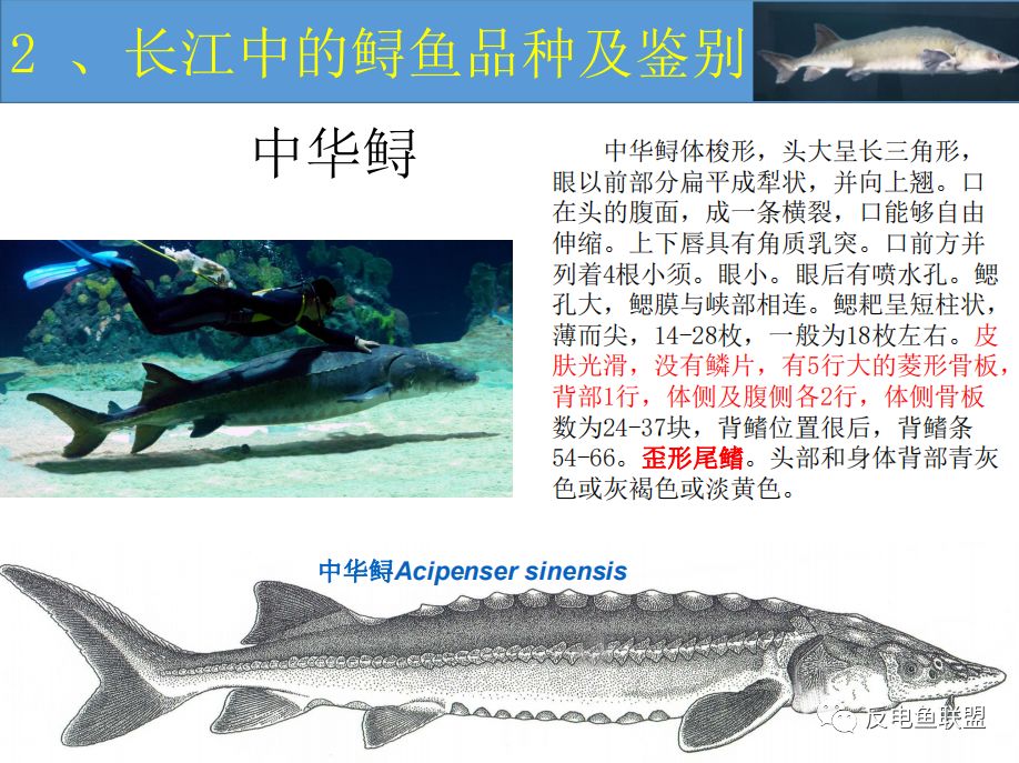 周涛队长还给小编分享了中国水产科学研究院长江水产研究所吴金明博士关于长江中鲟鱼的一些课题研究。品种及鉴别特征