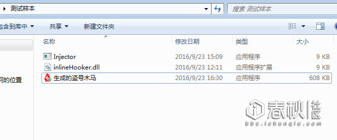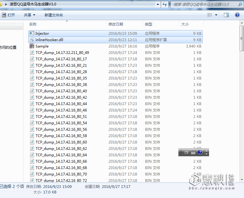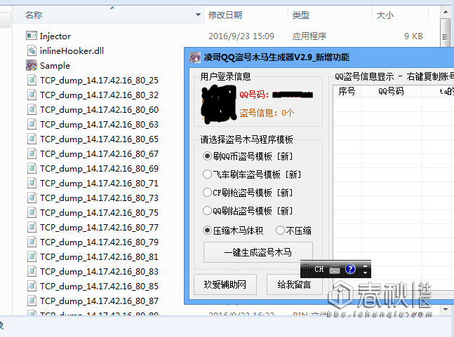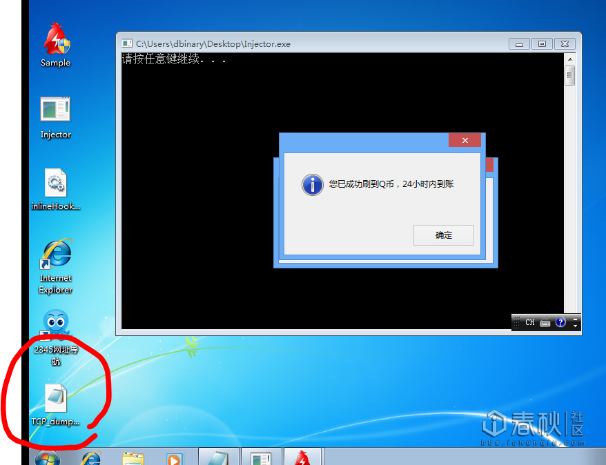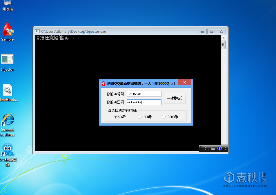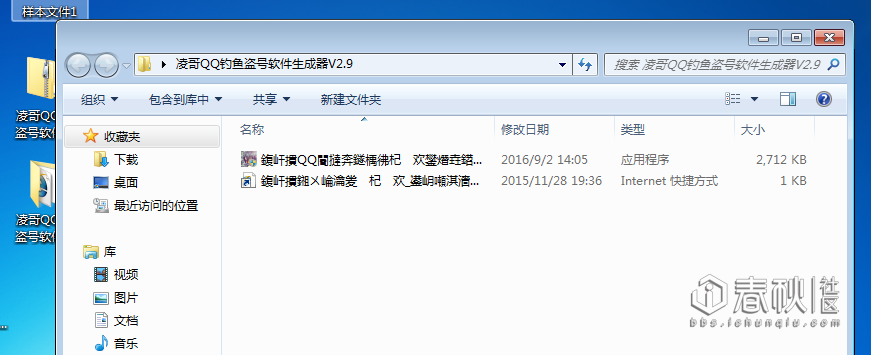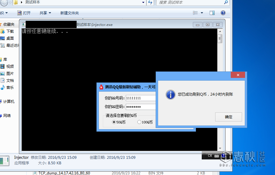 把这个“2016刷qb软件”和我们编写好的hook程序一起放入虚拟机,我们把这个钓鱼程序重命名为Sample.exe