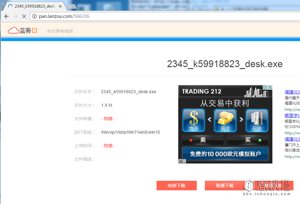 那么到底是什么玩意呢。不妨打开浏览器浏览一下那个地址,2345????.exe,