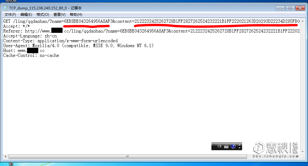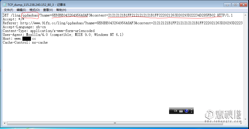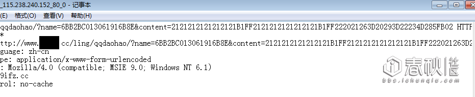 通过数据包,我们发现它指向了www.****.cc这个地址,而qqdaohao怎么看怎么觉得像QQ盗号的汉语拼音,这命名手法确实很“易语言”,而name和content这两个参数在传递什么东西。