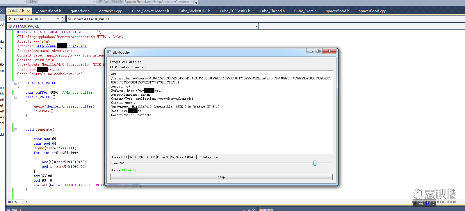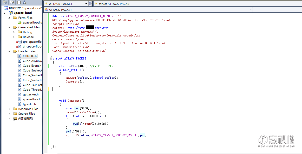既然如此,无需客气,打开SpacerFloodProject,修改config.h代码,把我们的请求代码构造一下,我们每次发送3KB的数据,那么就能消耗其至少3KB的空间,假设一秒发送十次的话30kb的速度,一天就能蚕食它24GB的网络空间,那么不出意外,这个损人利己的钓鱼空间不出2天八成就爆炸了