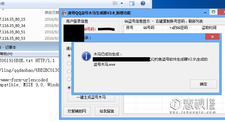 不管那么多了,我也试试这钓鱼软件肿么样,我同样生成了一个“钓鱼木马”,当然这水平叫木马是不是有点太抬举自己的了