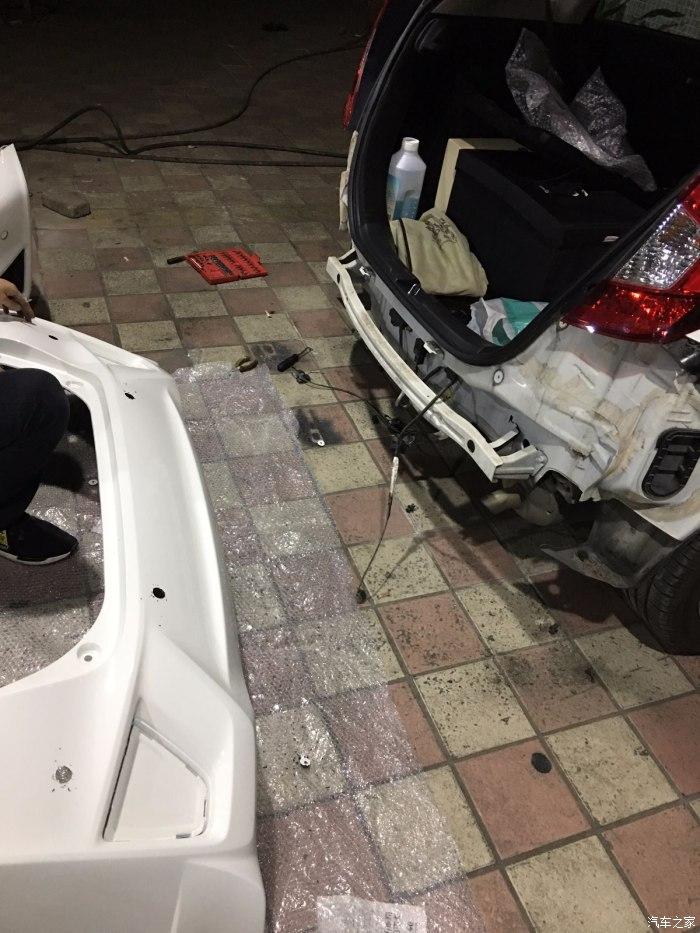 接着是RS后杠+内衬+饰板,又是拆,拆车RS后杠就是好,后杠的背面全部标记好雷达孔的位置,直接开孔就行了。
