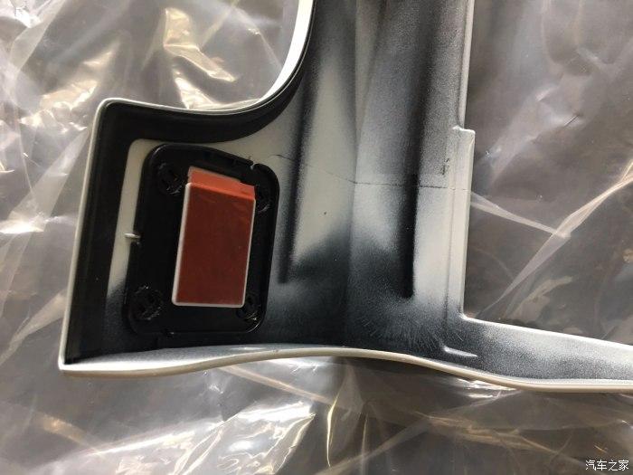 侧裙前端的背面也带有原厂3M胶,最可惜的是侧裙后端的背面只有一个卡扣,大鼠标完全用不上,安装也只能上一些玻璃胶了。