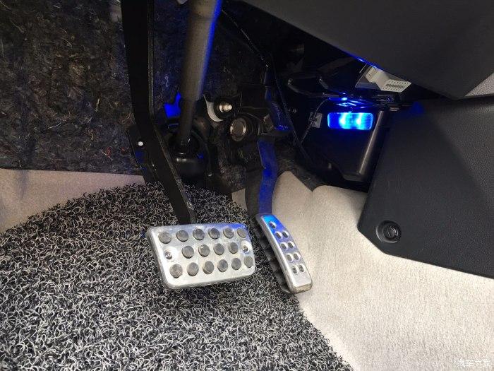 原厂铝合金油门刹车踏板和原厂缤智蓝色脚部氛围灯,氛围灯在白天拍的效果不明显。