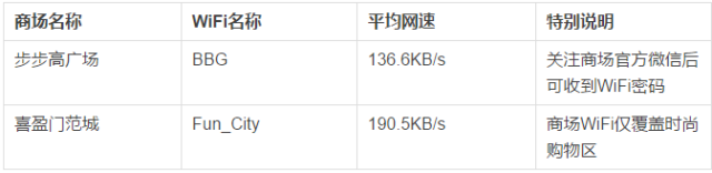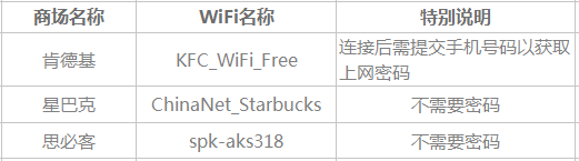 商场目前已有橘子洲、梅溪湖、爱晚亭、南郊公园、生态动物园正式对外开放免费WiFi。