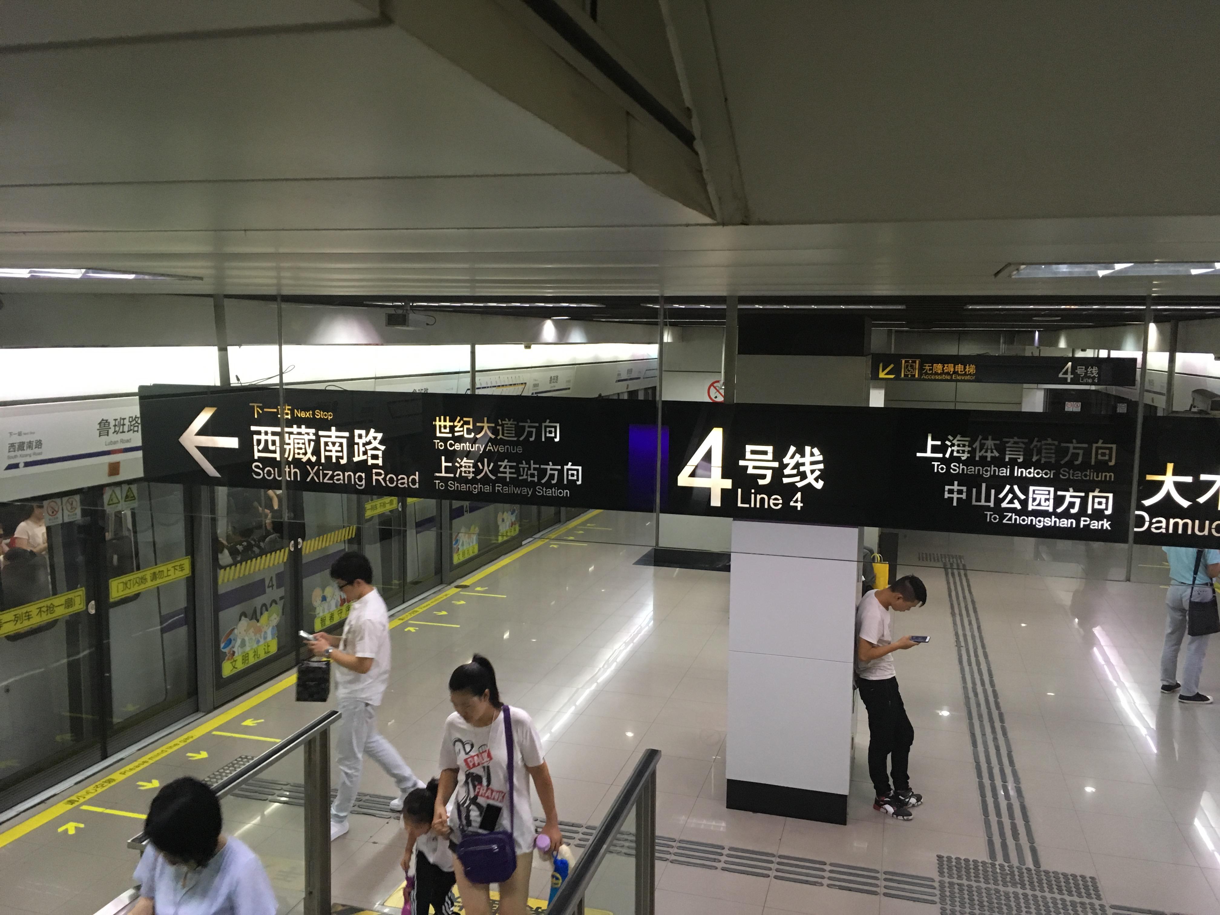 上海 4 号线的导向标识其实比北京的环线来得好。它大概是国内第一条使用「下一站」加两座前方「重点车站」来标识列车方向的环线地铁。而且,对于重点车站的选择,不像北京 2 号线一样每一站单独选,没什么规律。上海 4 号线使用了与 1、2、8 号线的五座换乘站作为全线的重点车站,这样每一站的参照物都一样。