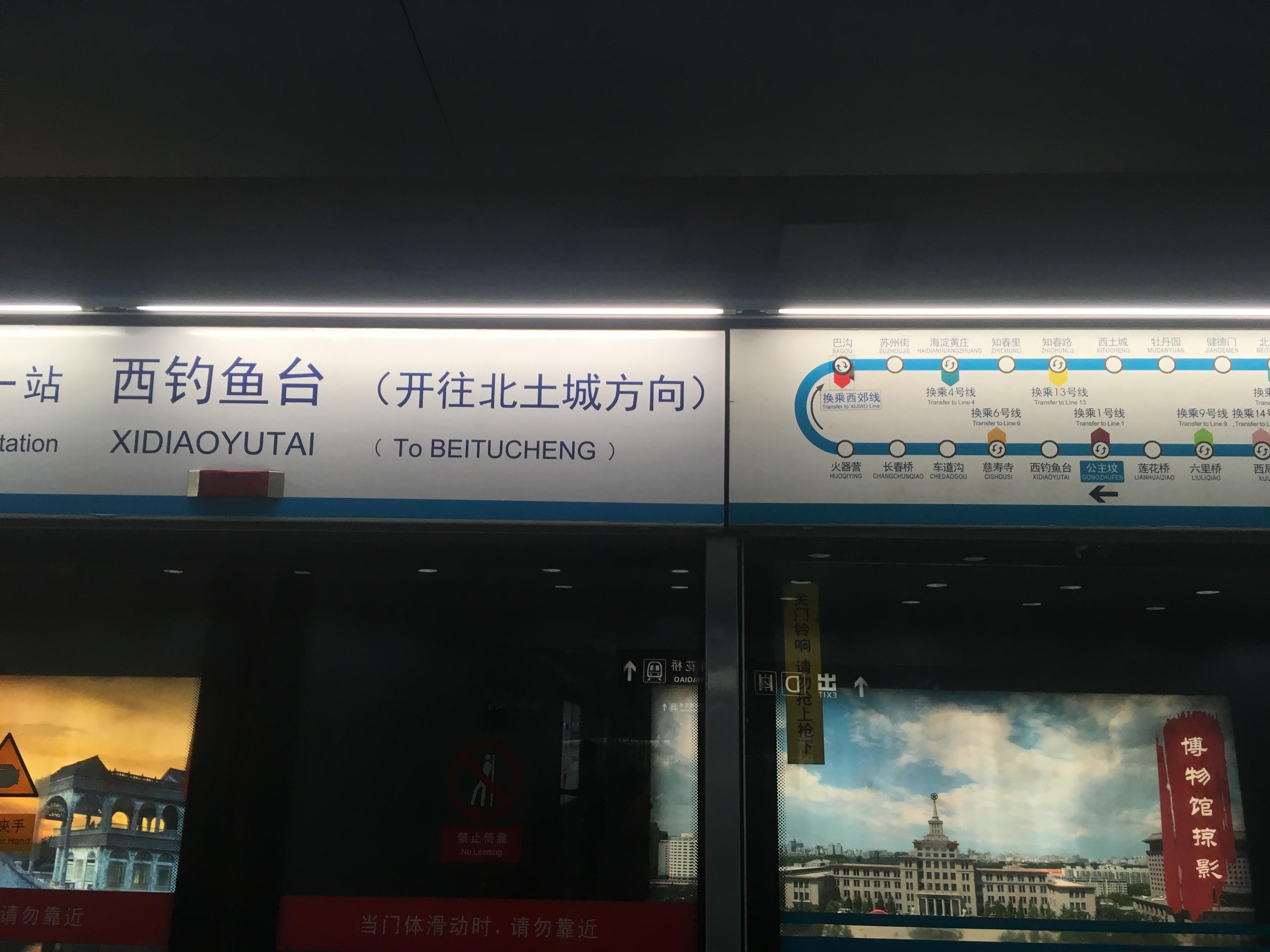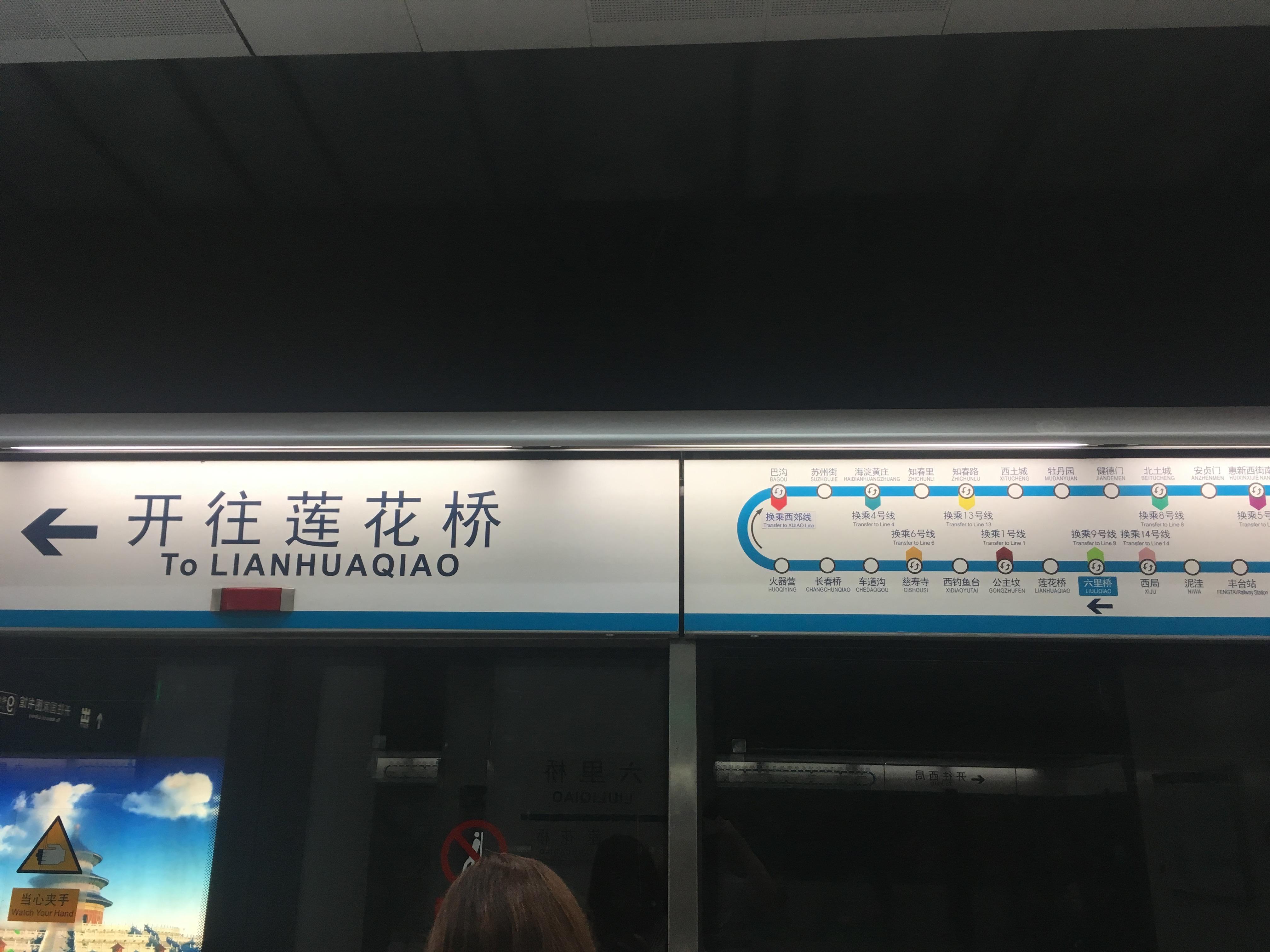 北京地铁一般标识列车的运营方向,跟世界各地都差不多,是在站台上用灯箱标识出终点站。