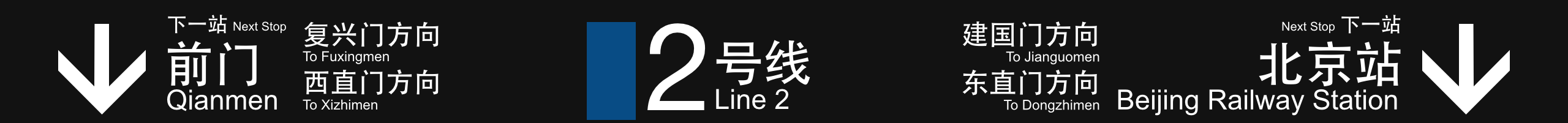 也就是说,把原来的「"← 开往" + 下一站」,改成了「"← 下一站" + 下一站 + "(开往" + 下一个重点车站 + "方向)"」。比如车道沟站外环方向就是「← 下一站慈寿寺(开往公主坟方向)」。