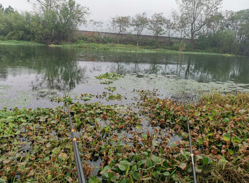 我们这边玩野钓的人经常有用双竿的,我观察总结过,基本上一半以上的人玩双竿都喜欢采用差不多长的鱼竿,然后丢一个窝子里。这样的好处是观漂方便,不会错失太多信号。