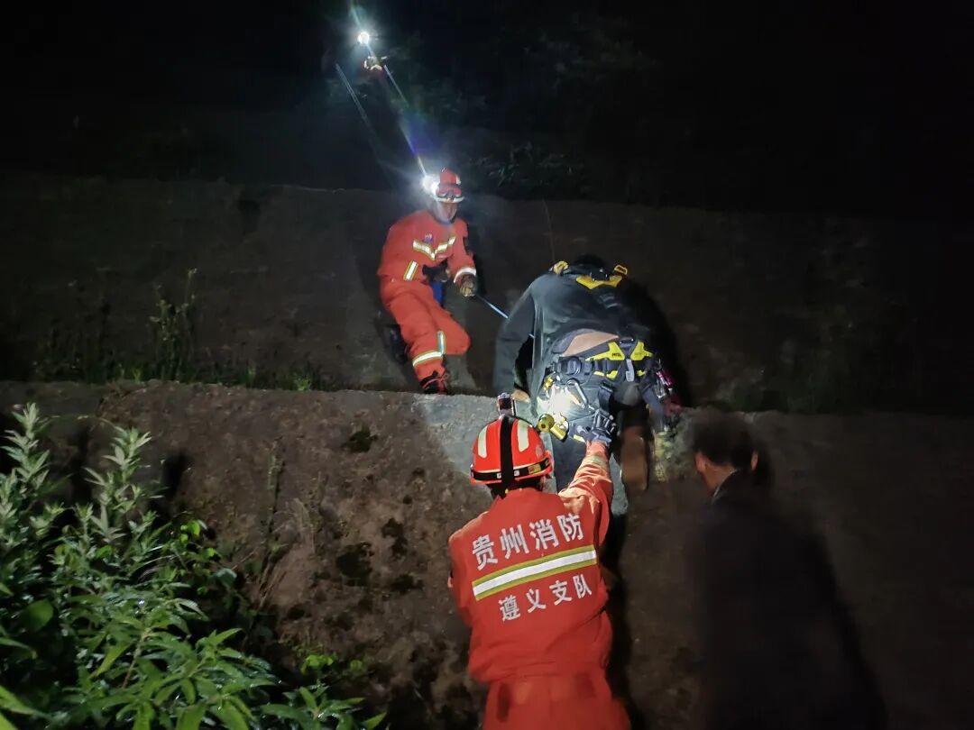 深夜!遵义一男子钓鱼跌落百米悬崖,消防员助其脱困