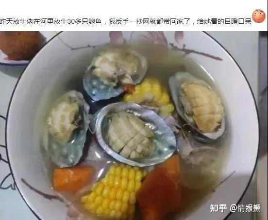因为不想空军,有人趁机捞走了放生的鲍鱼,于是美餐一顿。