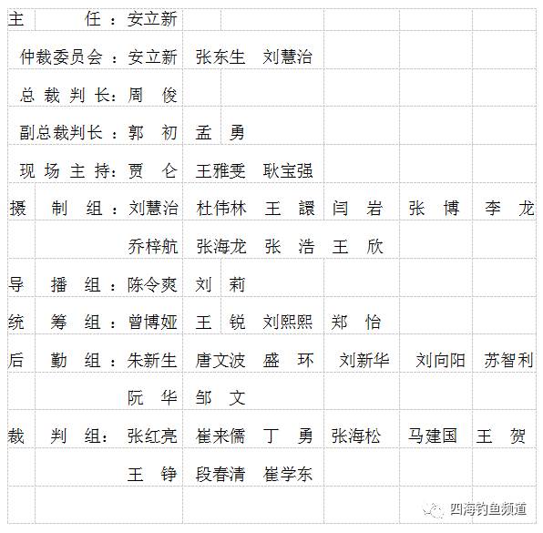 5、总决赛为期一天,比赛项目为手竿钓混合鱼尾数赛,参赛队同时上场进行比赛,三轮复活赛的第一名成功复活组成热血复活队成为第四个总决赛参赛队。每队上场 1 名队员,比赛为四节,每节一换位。四节比赛内,每队每位选手以 10 尾鱼为队内换位条件,队内换位时不受比赛节次影响,若每队每名选手都上场后,则进行队内第二轮换人,