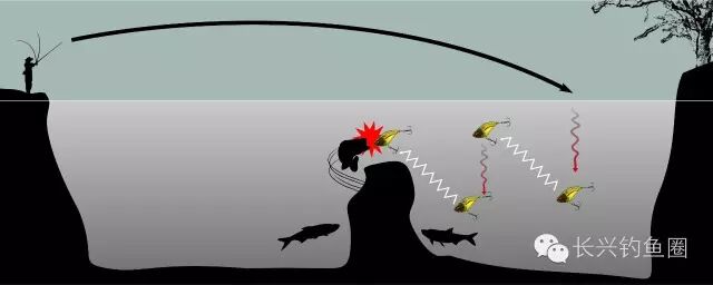首先我们必需先准备的工具当然不外乎就是抛竿和卷线器及有色鱼线跟假饵。为什么要选有色鱼线呢?因为拟饵钓是看线钓,所以当然要选有颜色的鱼线了!一般钓友只会拉竿卷线拉竿卷线,总以为假饵被鱼拉跑再拉竿,这种做法是错误的。如左图鱼:反方向进攻中鱼的机率很低,因为当鱼儿见到假饵再要进攻的响应时间较短,而从后面进攻响应时间较长,那当线松掉的时候要及时拉线,不要等鱼发现把饵吐掉了,线往两边跑,如果再不拉的话,那你就已经输掉四分之三以上的中鱼机率了,所以我们要选好工具,把握住钓鱼最佳时机。