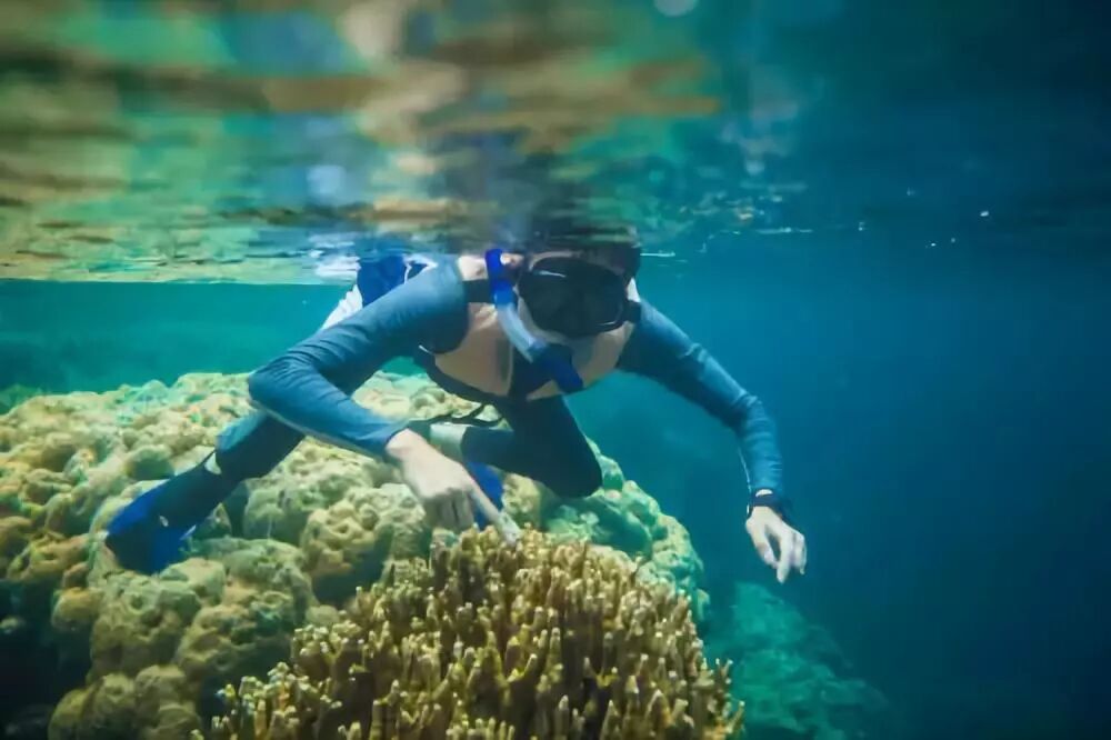 早晨起来后,如果还想再玩玩,可以继续抓沙蟹,或者严重海岸线去捡海货,也可以再次回到头一天的那边,找有水草的那块区域去浮潜(有水草的地方就说明是长期深水的地方,有很多小鱼的家就在这边,而且水里还有各种颜色的水草,海葵、海星等,如果下个粘网的话,也能抓到一些小东西