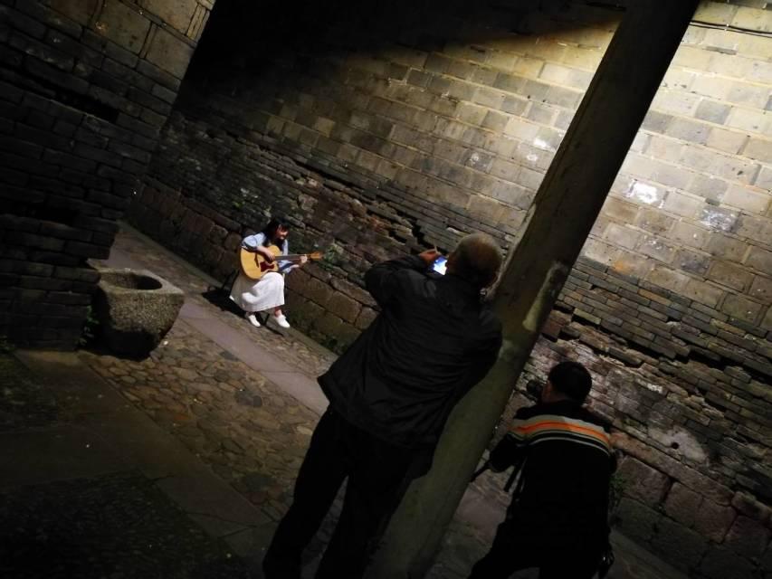 晚上我们去在客栈旁的城南小酒馆,城南小酒馆的小姐姐人也很好,还送了我们一盘瓜子和柠檬水。我们坐在三楼的天台上吹着微风,喝着小酒,欣赏着夜晚的古城,远处只有些微弱的灯光。偶尔运气好可能会遇上来这边取景拍摄的摄影协会成员,他们借助古城小巷里路灯昏暗的灯光,拍出一张张带有古城韵味的照片,路边拉个游客当模特可能也是常有的事。