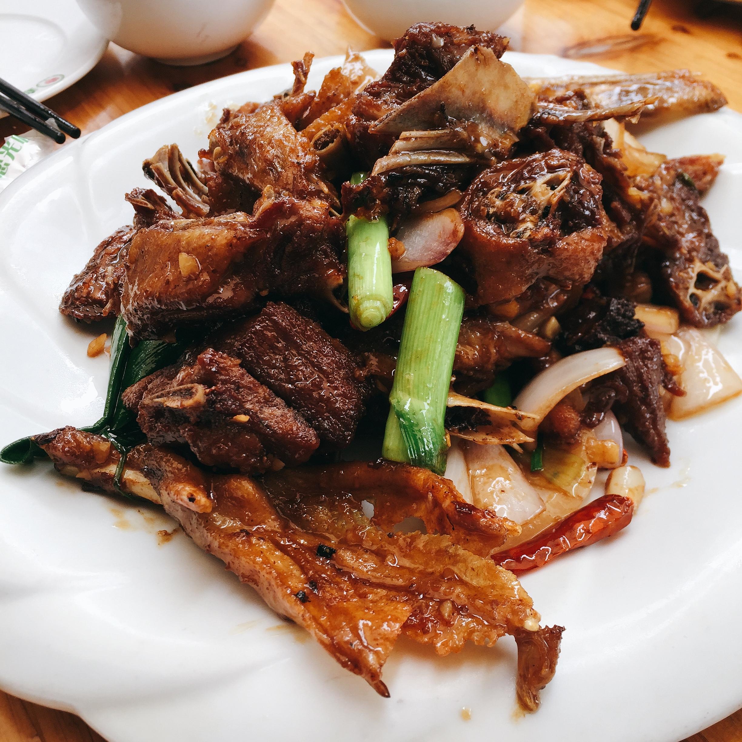 在客栈放下东西坐了一会儿,我们就出去吃中饭了,之前在攻略上有看到一家王子小炒的店好吃又实惠,我们就直接导航过去找这家店,也是在古城内没有多远,走个几分钟路就到了。我们点了滑菇炒牛肉,野菜炒鸡蛋,农家豆腐,鱼头豆腐汤,我们四个人每个人平摊下来花了31.5元,价格很实惠,也很好吃。滑菇炒牛肉很好吃,牛肉分量也很足,把那个菜汁浇在饭上,和饭拌在一起吃真的很美味(*´∀`)~。野菜炒鸡蛋好像是当地的特色,每家店都会有这道菜,味道也不错。豆腐也是当地的特色——游浆豆腐,外面是炸的,里面是嫩的。