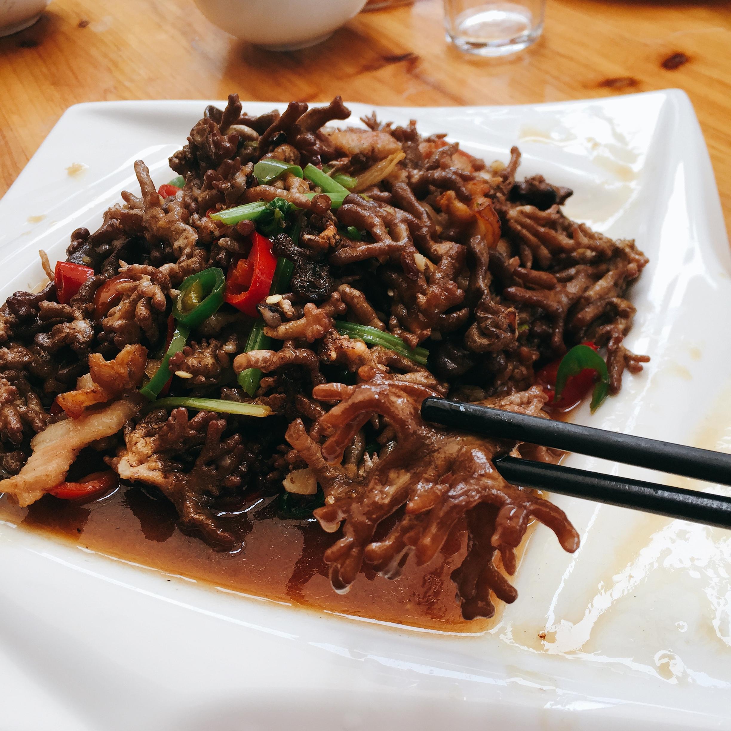 大金湖游览了将近四个小时,如果容易饿的话最好备上一些干粮。12点多我们坐着出租车回县城,跟司机商量好和公交车一样也是8块,我们才上了车。因为古街里有很多的餐馆,我们基本上都是在古街里吃完饭再出去玩的。第二天的午饭是在一家乡味土菜馆解决的,点了干煎鸭,红烧仙草,高山鸡爪菇,凉茶饮料,每个人44元。特别推荐他家的干煎鸭,也算是他家的特色菜肴,超级好吃的。因为看到攻略上有介绍当地的美食,就很想尝试一下,没想到仙草糕还可以炒着吃,味道也不错。听人说大金湖的有机鱼也没什么可吃的,跟外面的差不多,还很贵,学生党表示吃不起啊(*/ω\*)。