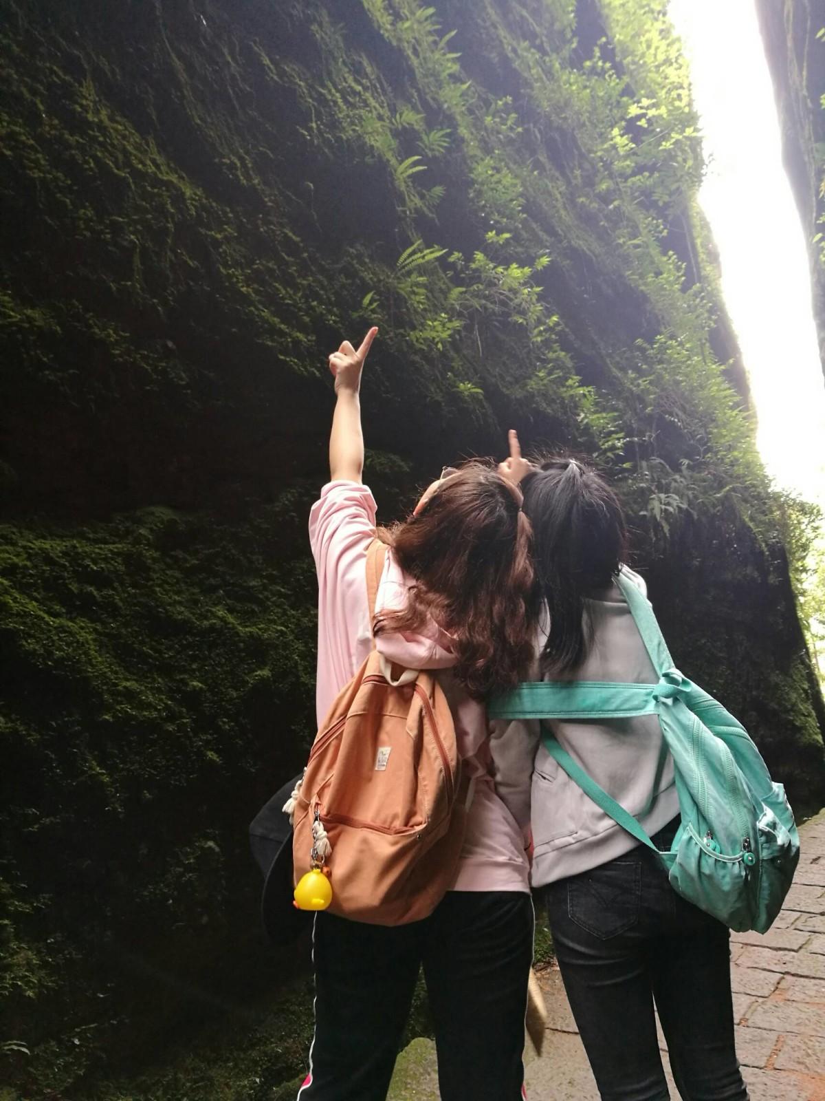 里面还有个祈福崖,很多人在那写下自己的愿望,挂在藤蔓上,还有些写在竹签上然后靠在岩石底部。沿途看很多岩石底下都会放一些树枝,有些人说这是希望自己能够像这个树枝撑起岩石一样顶天立地。我也从路边捡了根短短的树枝放在岩石底下,还被同学嘲笑了一番。