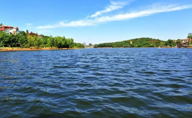 湖上设有栈桥,你可以站在长长的栈桥上,从南看到北远眺,看似对岸近在咫尺,但真正从此岸到彼岸,却是长路漫漫。