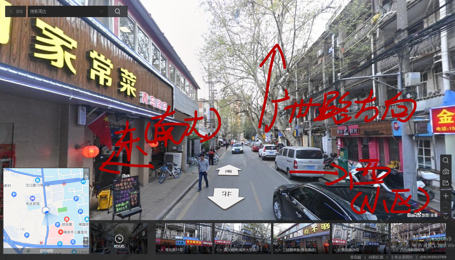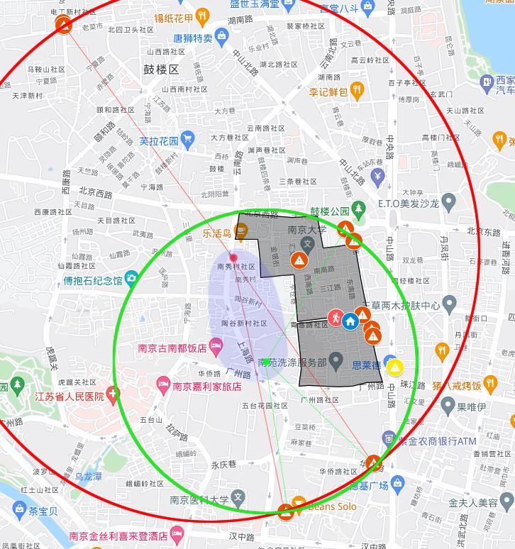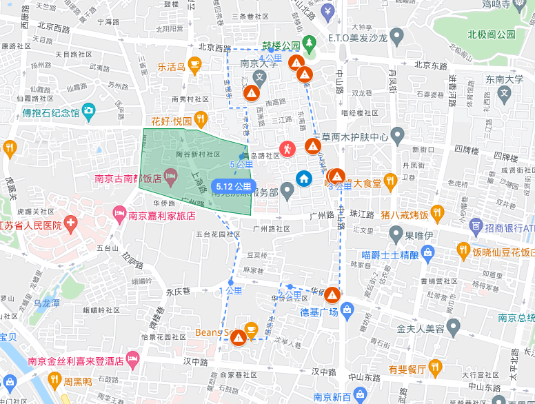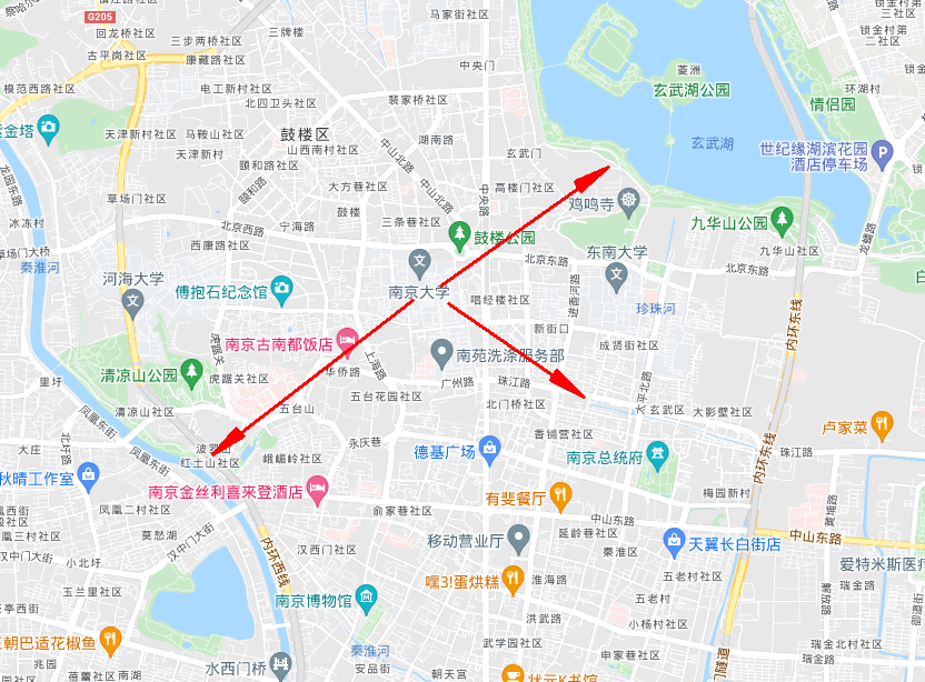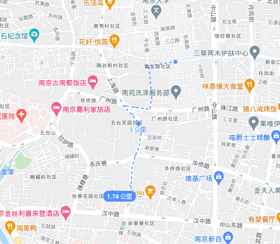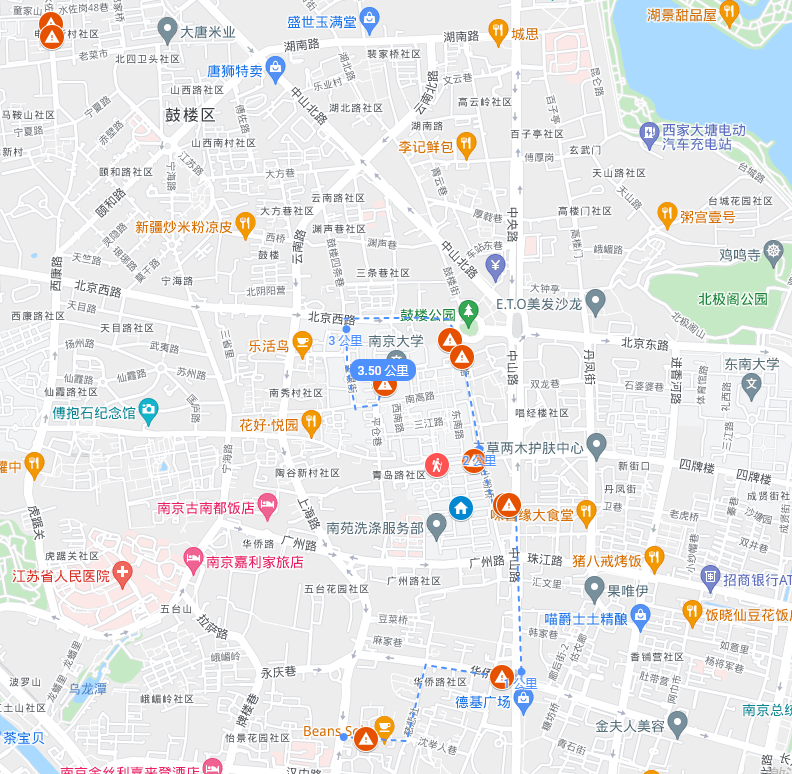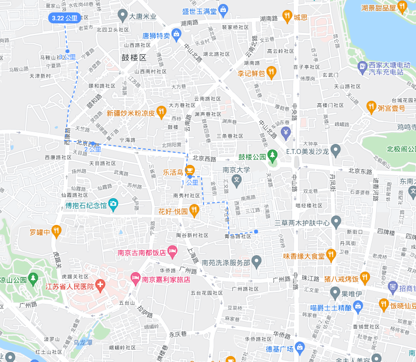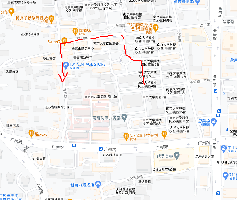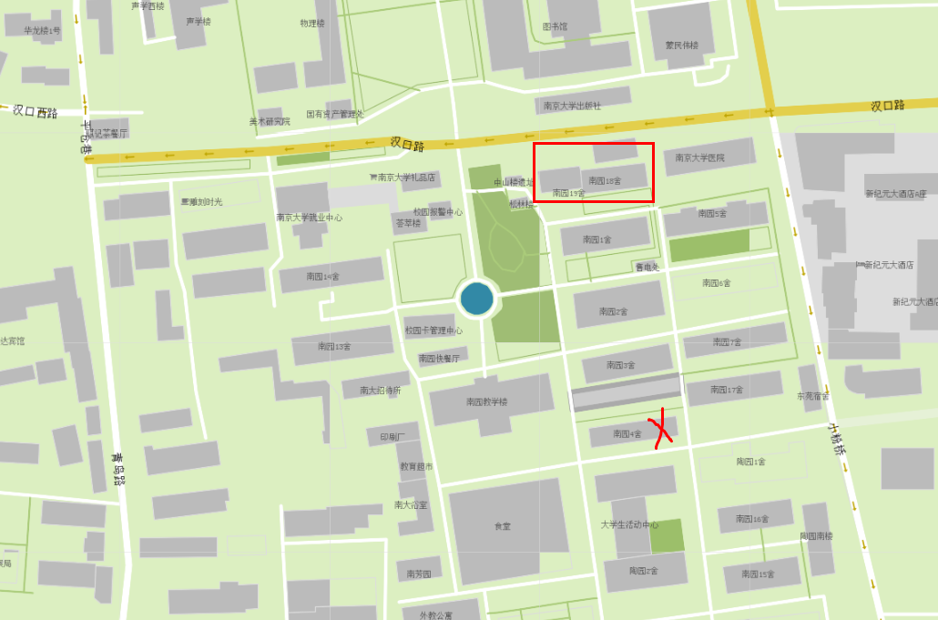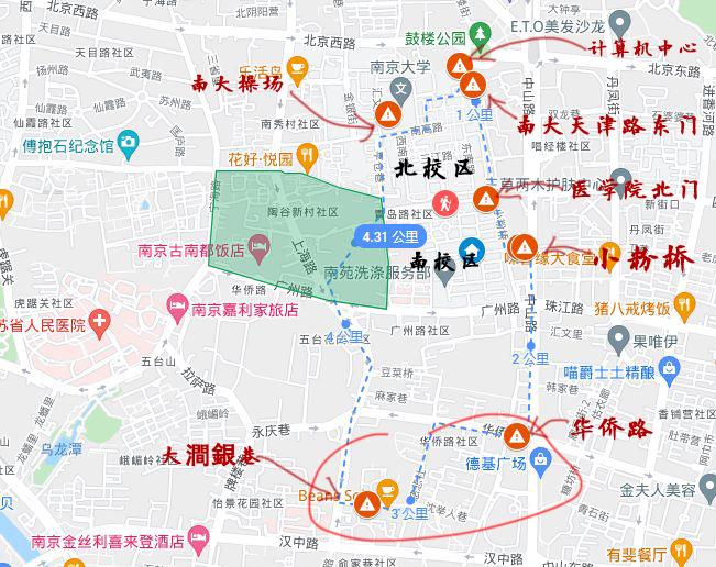 以南大校园北门为起始点: