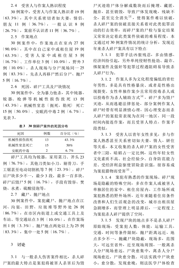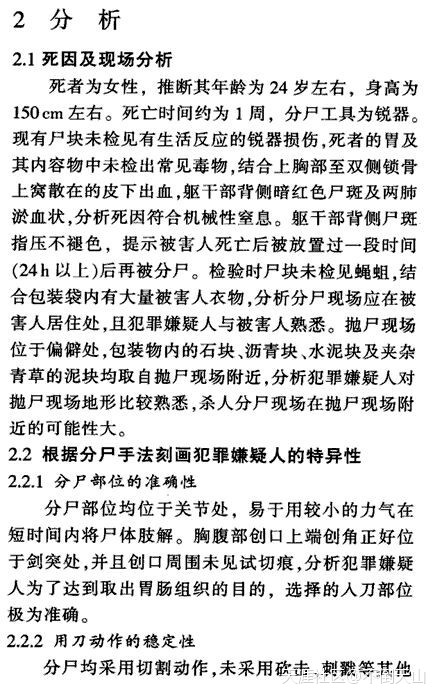 总之、性质恶劣、社、任务重,但;因果关系明确,中心现场突,只要指挥侦查得当,综合运用技术手段一般均可迅速破案。[17][18]30例杀人碎尸案分析