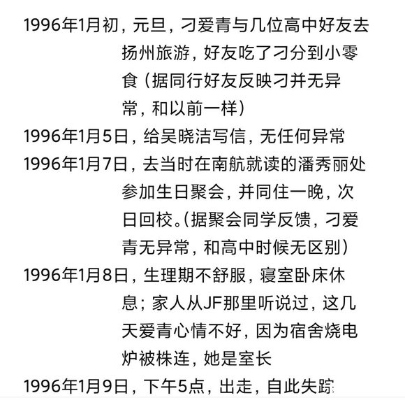 1.古林公园的事,所谓徐姓人提供的线索:由当地部门已经查实,刁的父亲,刁的姐夫,刁姐姐的公公,在96年元旦开始至元月19日,均在姜堰老家,多组乡邻的证言,已完全排除在如上期间于南京市区出现的可能。