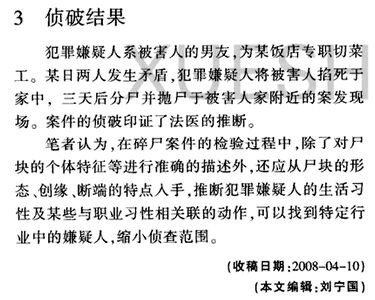 ③犯罪人和犯罪现场一般具有密切关系。最后是一点题外话,瞥见有人说碎尸“需要很强的心理素质”
