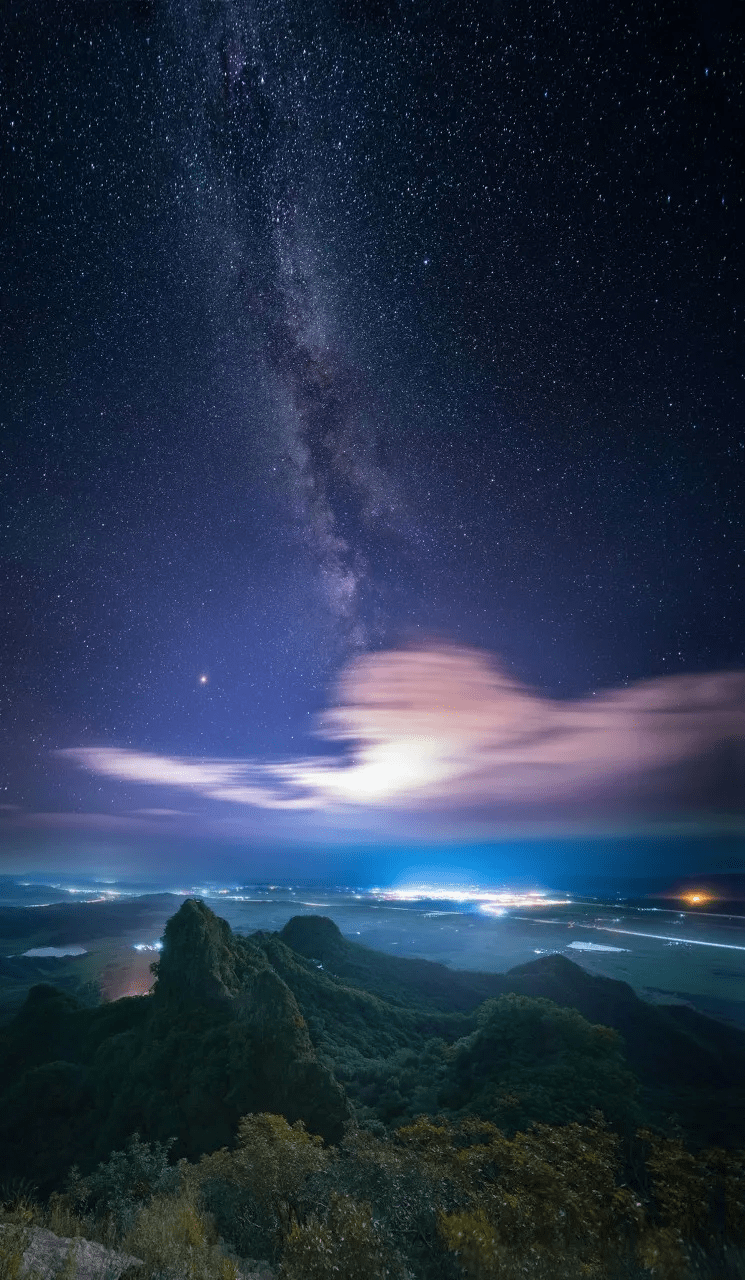 等夜幕降临,山的轮廓变成黑色,与夜空融为一整块黑色幕布,任凭漫天星辰在上面发挥、闪耀。
