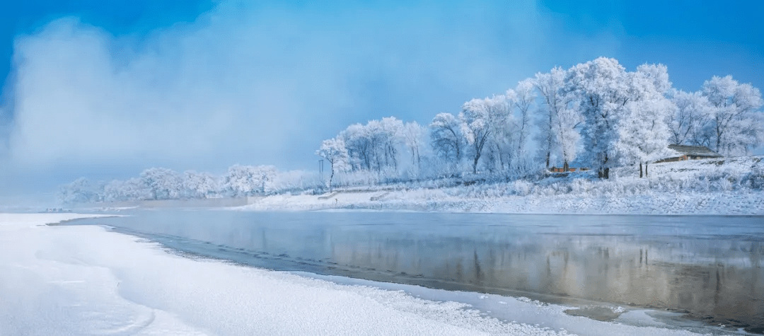 江上充足的水汽, 冬天足够低的气温,再加之两岸的树木充当了雾凇完美的生长点。