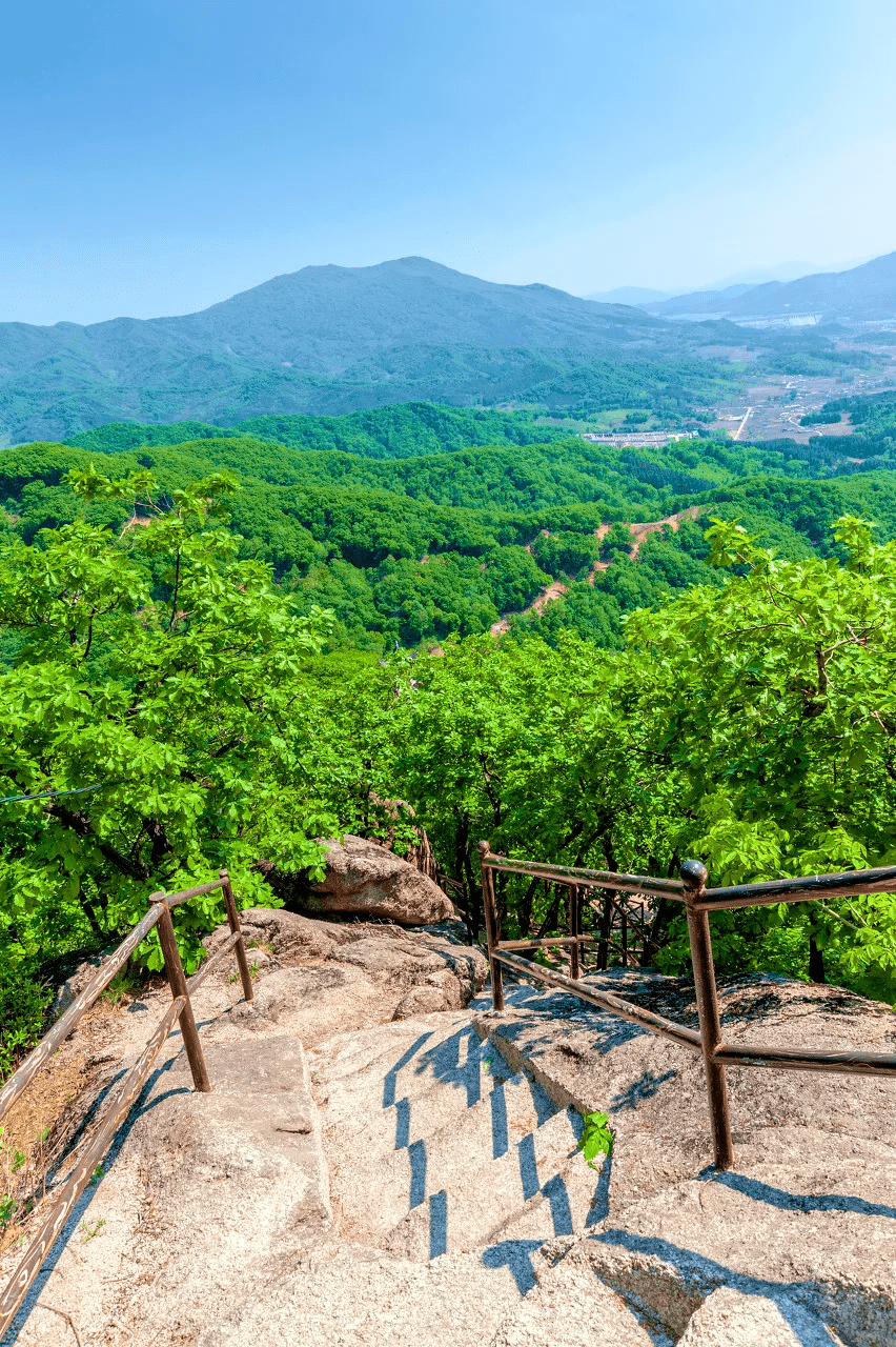 伴着一路怪石嶙峋,树木葱茏,庙宇幽静,爬到山顶远眺,视野非常开阔。