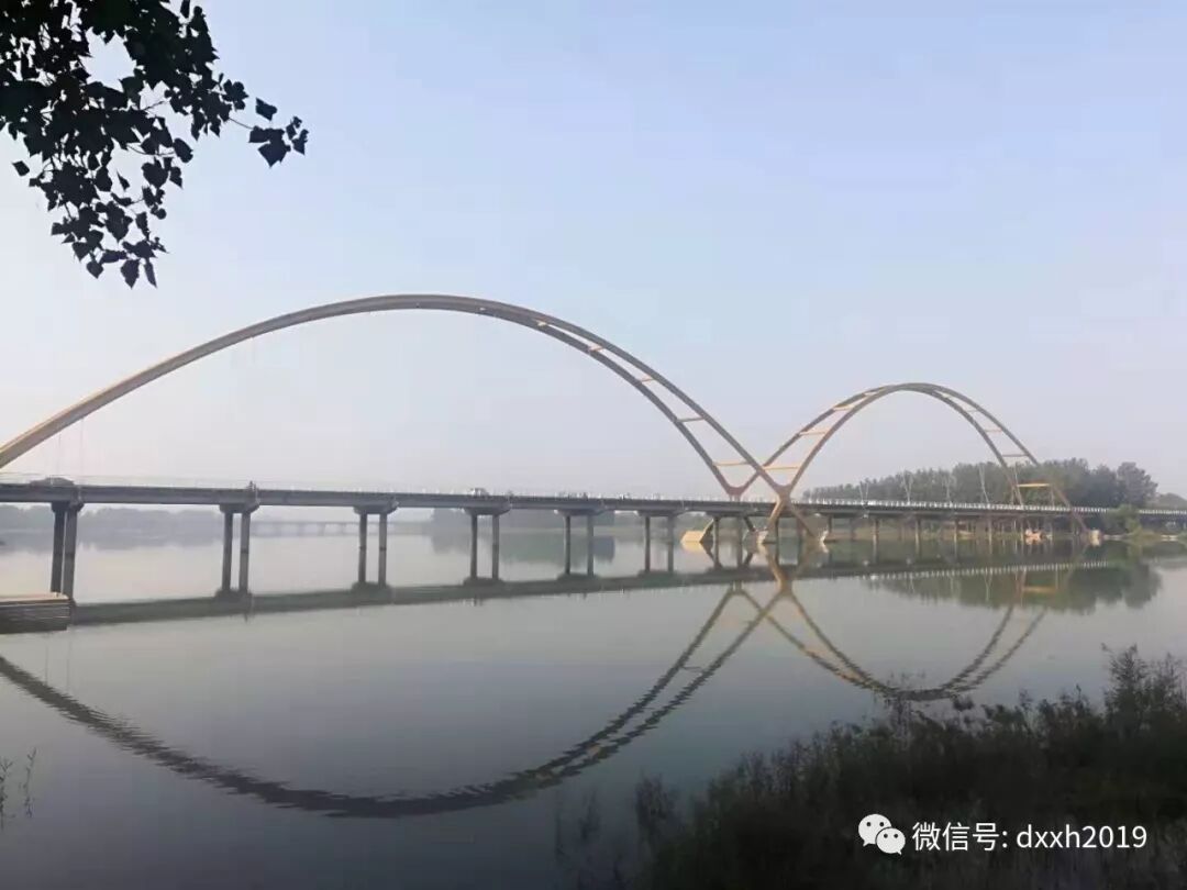 登桥远眺,潍河两岸的美景尽收眼底。西边是高楼林立的昌邑城,一座座高楼拔地而起,诉说着昌邑县城的繁荣,南边是潍河中桥,两座彩虹,画在了潍河桥上,倒映水中,组成了两个完美的圆形,就像一个美丽的花瓶横躺在水面上,美哉!妙哉!北边是波光粼粼的水面,偶尔有几只水鸟飞过,河两边的柳树下,坐满了垂钓之人,不停地轮竿,收竿,纵使外面风云变幻,我自岿然不动,或许钓鱼的乐趣就在如此吧!