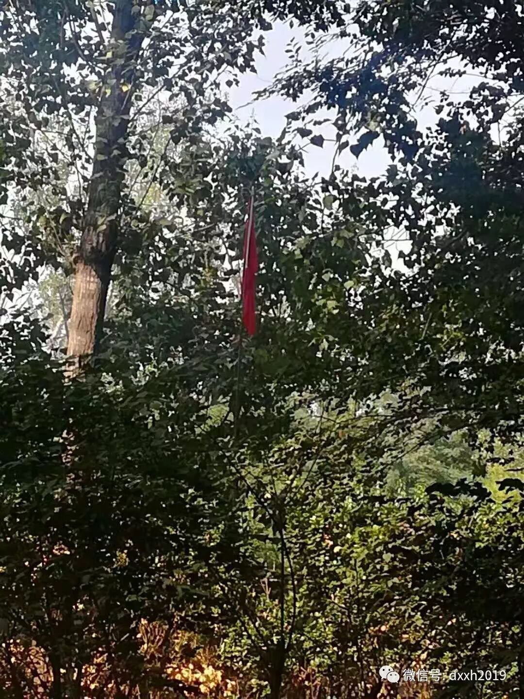 我只好退出了这方净土,抬头间竟看到绿树掩映间有一面红旗在迎风飘扬,旗杆是一根弯弯的竹竿,老人身在丛林间,却怀着一颗爱国之心,难得,难得!绿色中,那面红旗显得格外鲜艳,一阵风吹来,红旗飘动起来……