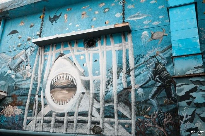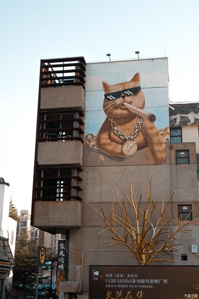 抵达目的地,见到了涂鸦墙上很有硬气的包租婆,不过与我的爱车相比,还略显逊色,因为我的领界S这个骚红色实在是太拉风了,瞬间成为了这一片最亮的崽儿。