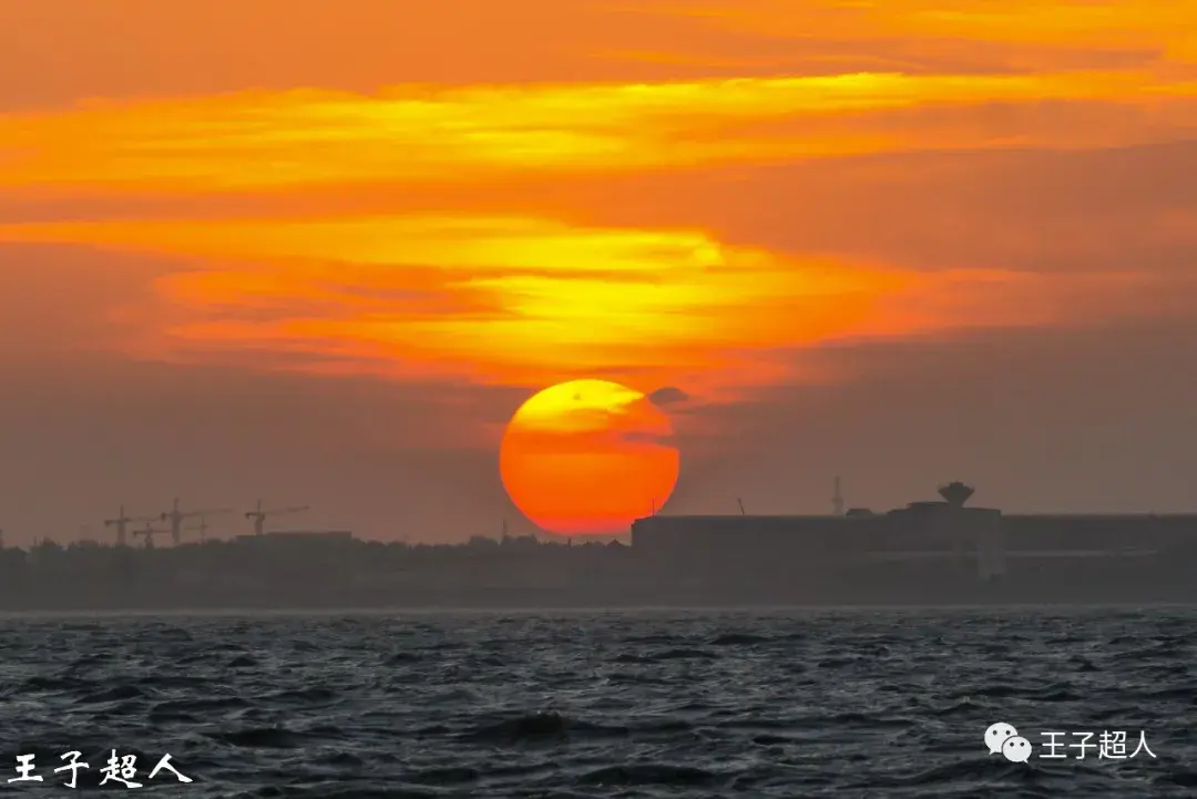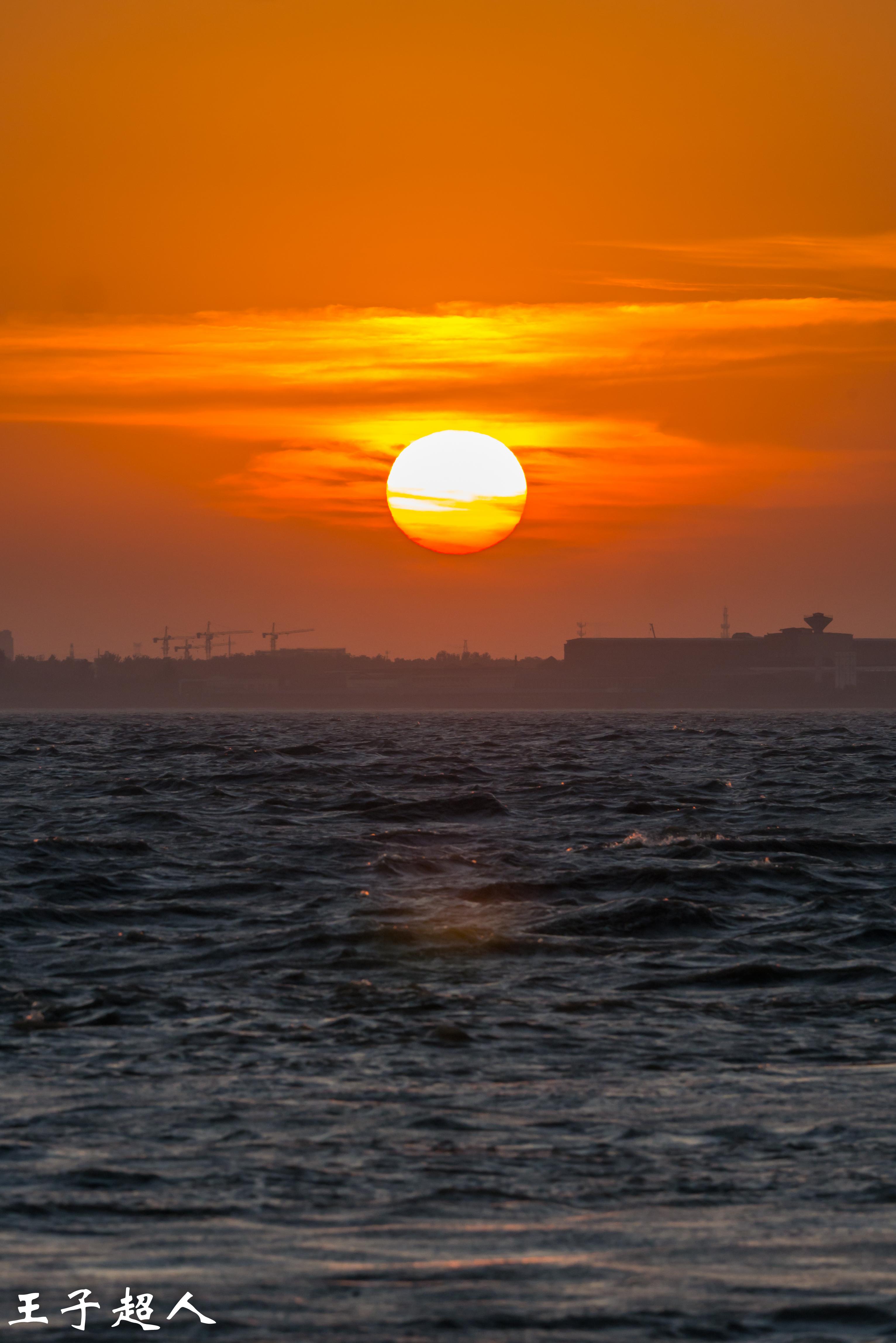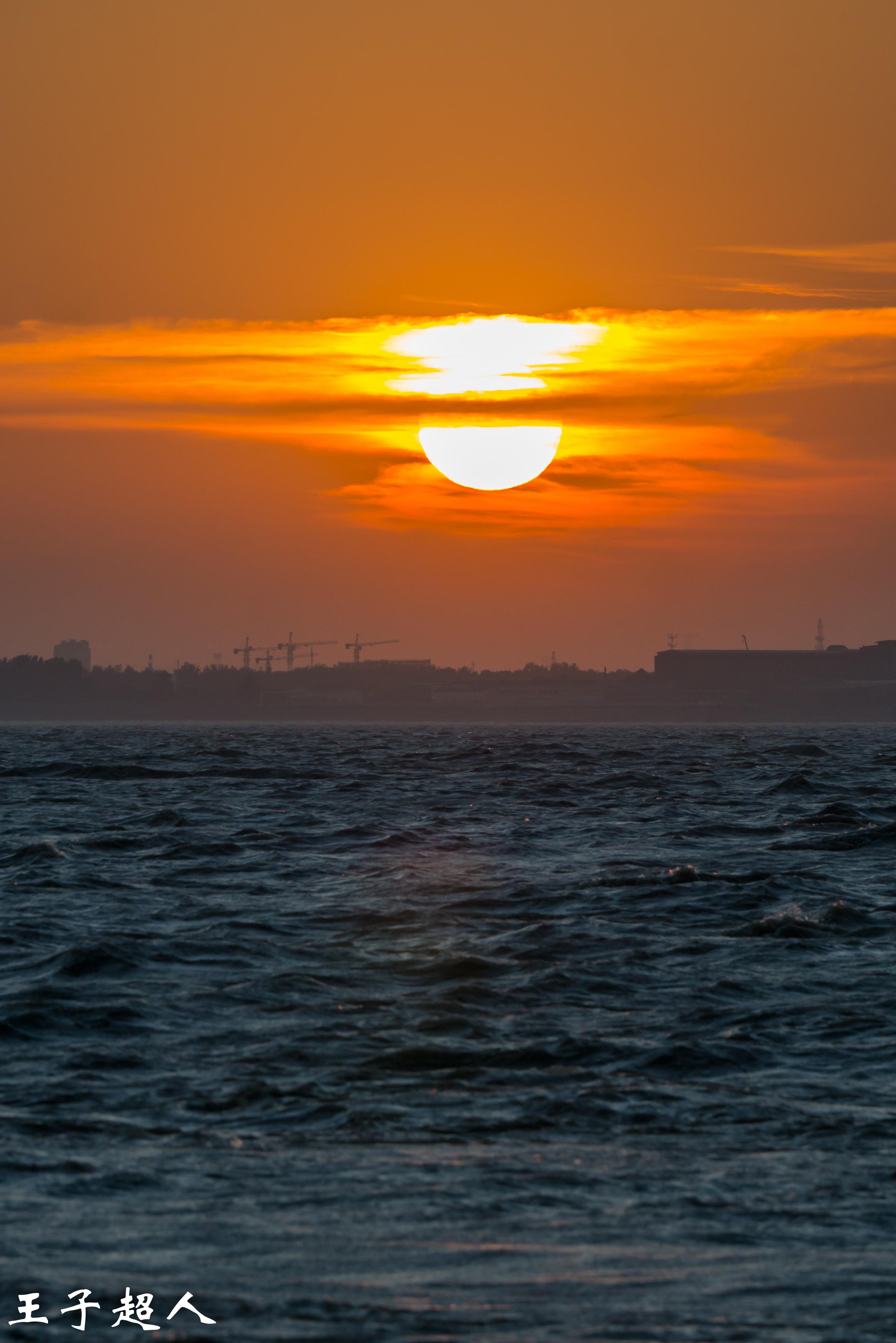 红日之下,是翻滚的江水。这江水流淌了千万年,这红日存在了百亿年,人活一世不过百年。看看地平线上的建筑,那些塔吊,那些钢筋水泥,如果太阳是神灵的望远镜的话,神灵是否会风轻云淡地一笑,我们渺小的个体每天所争夺的名利金钱不过就像这涛涛长江里的一滴水。