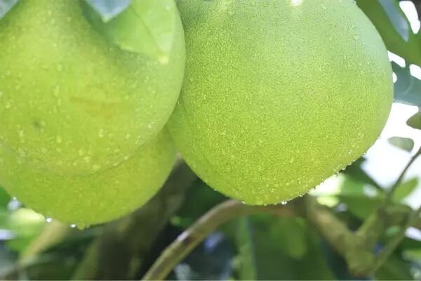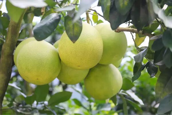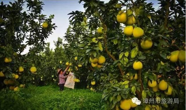 绿树掩映中,沉甸甸的柚子挂满枝头