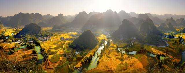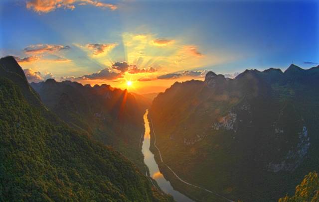河池,名副其实,其名多水而风物多情。一条红水河串联多多少美景:这里青山叠翠,雾霭氤氲,阳光照在山坡上,斑驳陆离。待到夜幕降临,渔舟唱晚,渔火点点。犹如大自然精心呈现的杰作,予人惊喜,令人流连。