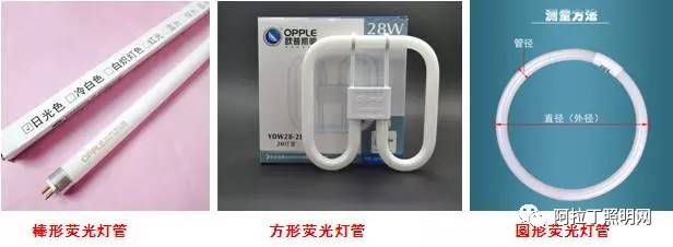 又名日光灯,从外观看就是一个密闭的棒状灯管,由电化学过程生成紫外线激发灯管壁上的荧光粉而发光,涂上不同的荧光粉发出不同颜色的光,它的寿命约为5000-10000小时。在过去荧光灯广泛用于大型厅堂、办公室、家庭照明,可是并不是很省电,某些出租房里可能还会有。