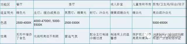 关于家庭照明的色温参考范围,大致分以下几个区域: