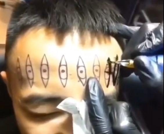 纹天眼就比较难顶。顾名思义,纹天眼是在额头上纹出第三只眼,像二郎神一样。