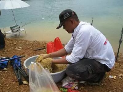 我们不像打毛老师能打几百斤,所以我们的老玉米还是处理一下的比较好。把它煮熟沥干之后按照十斤玉米一斤红糖的比例混合好,然后放三五包酵母,用大塑料袋密封发酵7天左右就好了,开袋就浓郁的窖香就可以提出去打窝,大型水库一次打个十来斤没有问题。打窝后四个小时候去垂钓,直接用加入一定的本地的水,能够减少鱼类的谨慎心理,增加上鱼的概率。