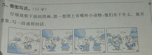 并且从二年级开始,四图的看图写话就开始占了比较大的比重。