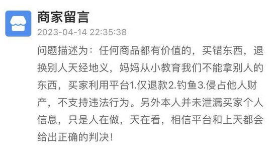 2023年4月18日,或许是再也无法顶住舆论的压力,在事件发酵4天后,终于迎来了买家全额退款的结局。