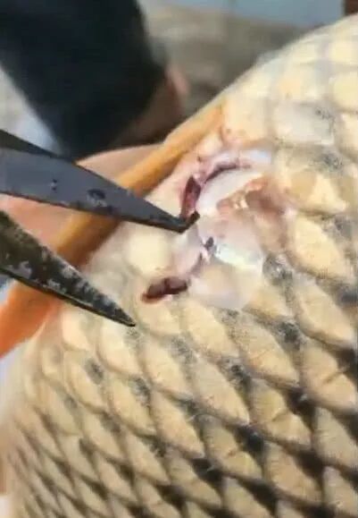 不过,这位钓友发现鱼身有数个红点,好奇之下,用剪刀掀开鱼鳞——让瞠目结舌的是,鱼鳞下竟然有活物...