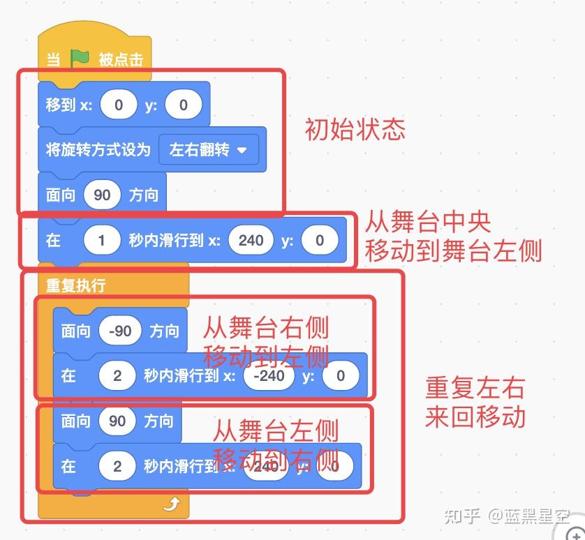 你只要记住,想要角色移动,就是要在一段时间内修改角色的坐标值。理解了这句话,你就可以使用不同的积木来实现它。