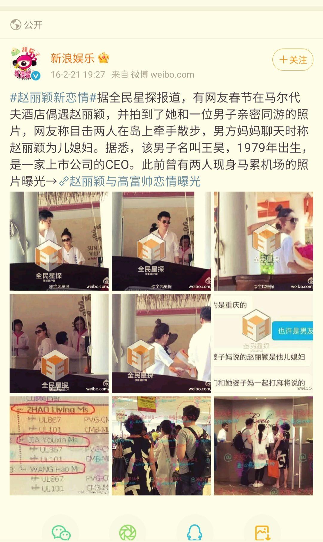 z演员和王昊何时开始的不知道,爆出来时都已经是见过家长和对方家长一起出国度假的阶段了(图里的黑裙子是王昊母亲)。有爆料说2014年开始,真假不知