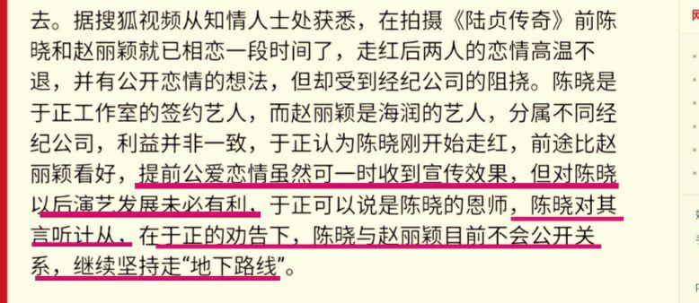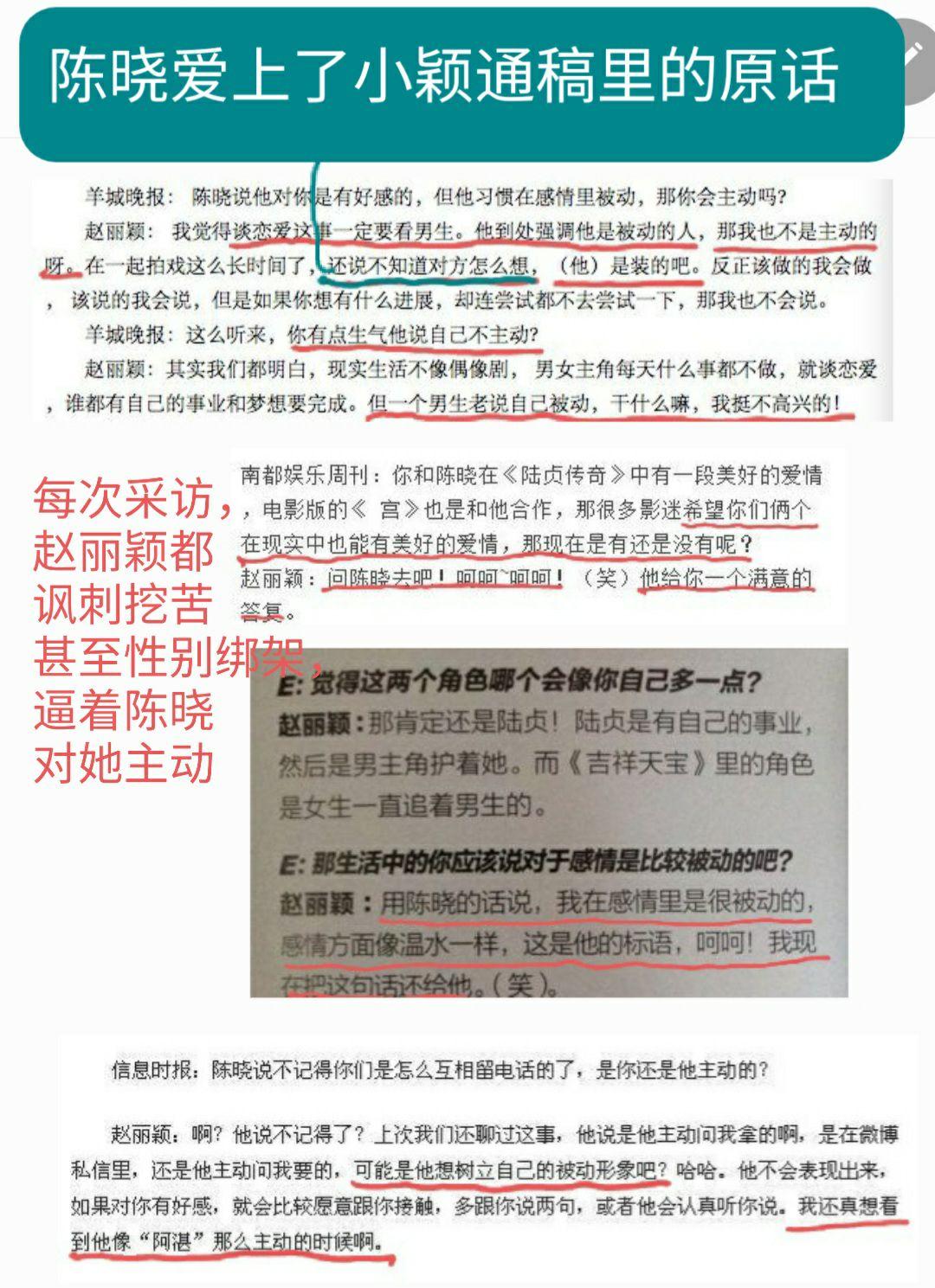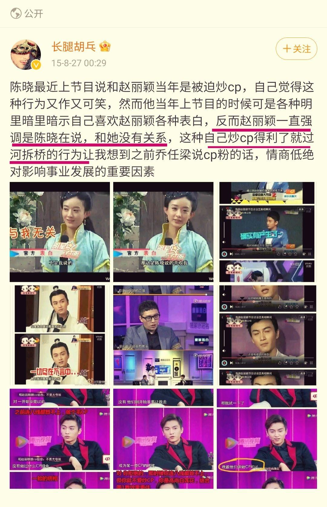 1: 陈晓当年为何会在节目里拆cp,说他和赵的cp是炒作 (注意,他可没甩锅给赵,而且节目剪辑有没有断章取义的黑他还是个问题) ,我们不得不提起下面这件事,此事发生在陈晓录制那个节目的前不久