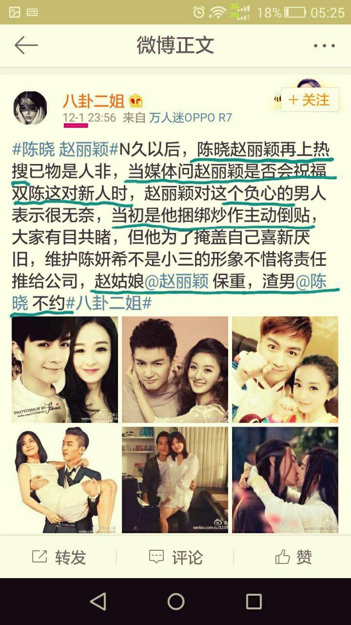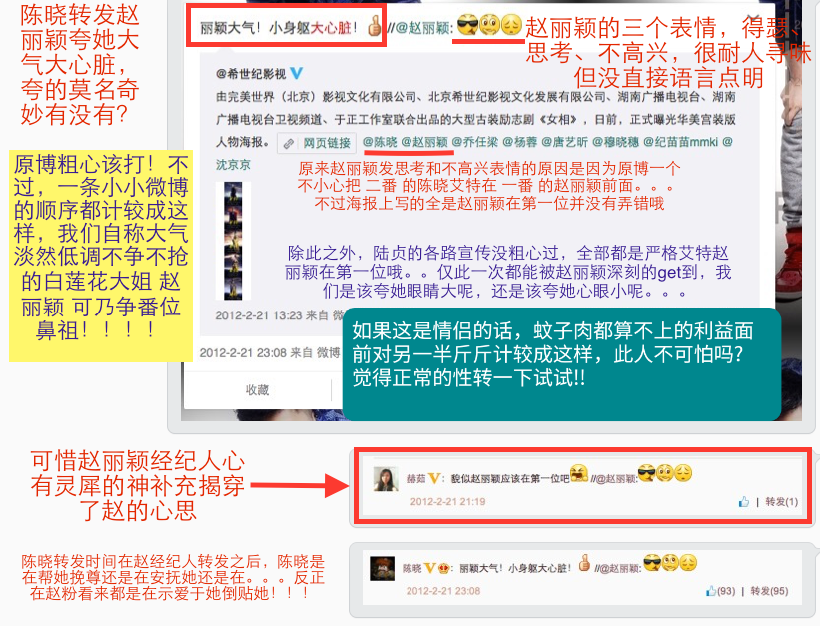 鉴于赵丽颖的粉丝一直到处开贴,各种黑白颠倒的不肯放过陈晓,我也就不怕麻烦,把赵丽颖的真面目以及她和陈晓那些真相到处扩散一下,看看是不是和这些年赵粉赵团队灌输给大众的正相反!
