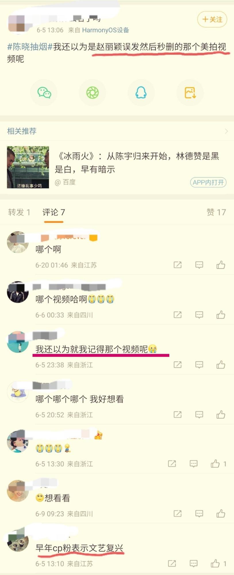 # 赵丽颖的团队人员装路人去颖晓cp吧爆料事件 + 赵丽颖本人在陈晓周冬雨新剧宣传前一晚发布陈晓私下抽烟视频并秒删事件: