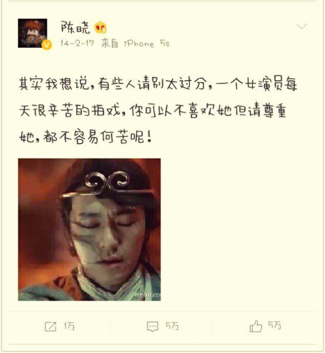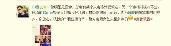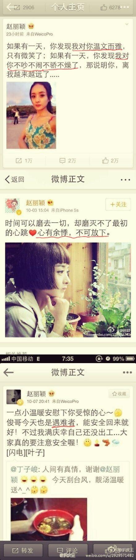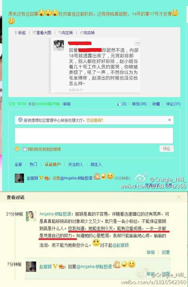 2014. 2. 17 cx突然发了这么一条微博,并且在评论里回复他说的这个女演员是赵丽颖
